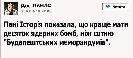 Госпожа История показала, что лучше иметь десяток ядерных бомб, нежели сотню «Будапештских меморандумов»