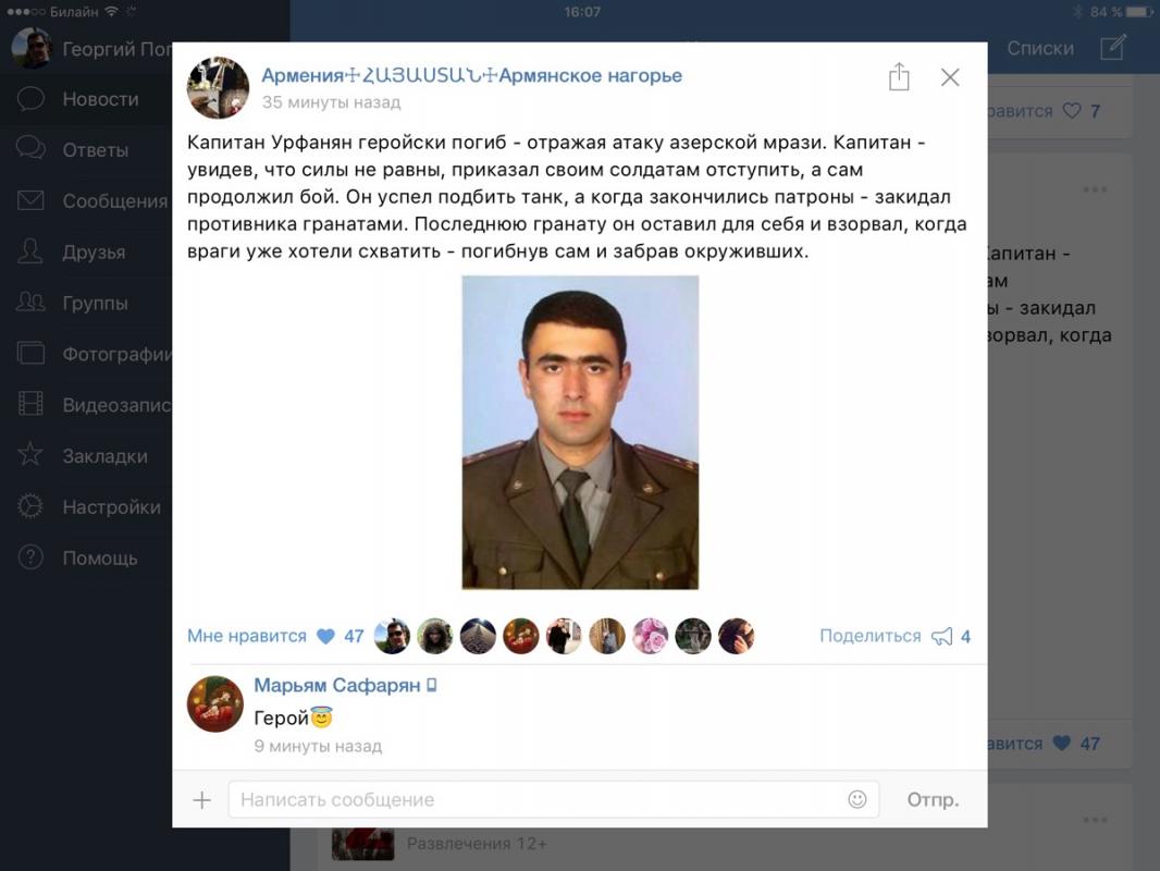 Այսօր ծանր հրետանի են օգտագործել: Ուղղաթիռը խփել ա սովորական զոտակոչիկը ասում ա «ինքը խփեց ես էլ խփեցի» (գրանատամյոտով): Աստված, թող Հայաստանը ձեռքբերումով դուրս գա, ոչ միայն պաշպանի պահի եշածը, մեր արյունը ջուր չի, այն գին ունի, մեր զոհերի համար մեզ չի կարելի մնալ նույն դիրքերում: