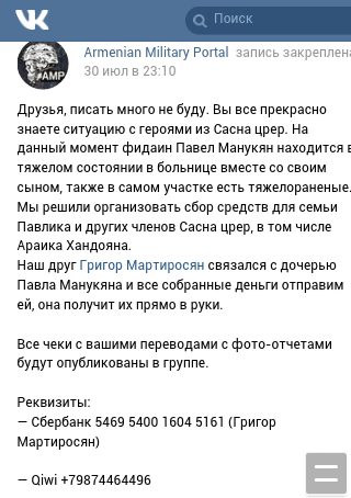 ребята с милитари пишут что семья Араика в числе получателей.вот  счет