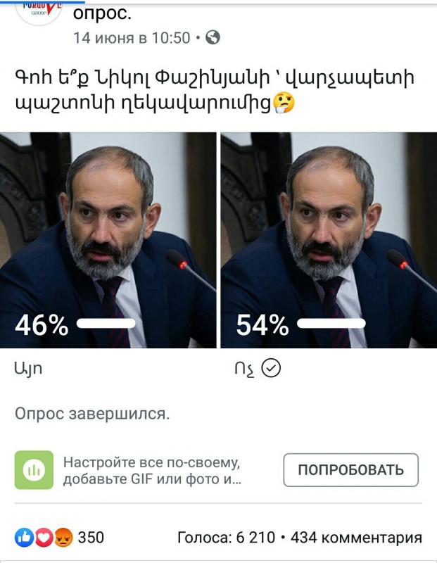интересный опрос провел Мой шаг в фб.Довольны ли вы работой Пашиняна в качестве премьера .