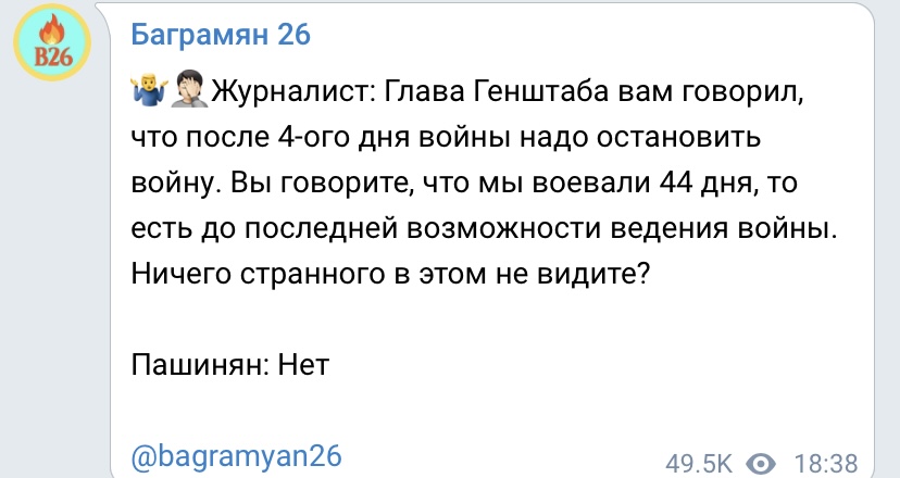 1.Никол Пашинян 44 дня смотрел с попкорном, как погибают армянские Герои, не оказывая никакой поддержки.