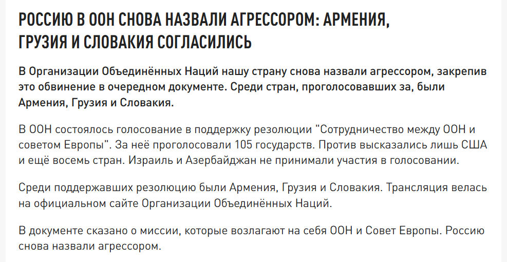 15. Для гостей площадки. Ни в одном международном документе Армения не названа агрессором и ни одной санкции не наложено на РА.