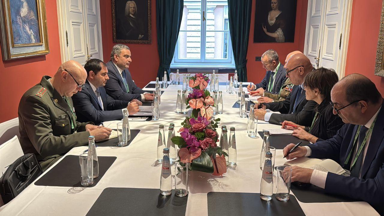 🇦🇲🇮🇹В рамках рабочего визита в ФРГ министр обороны РА Сурен Папикян 14 февраля встретился с министром обороны Итальянской Республики Гвидо Крозетто. В ходе встречи был обсужден ряд вопросов, касающихся сотрудничества Армения-Италия в сфере обороны, а также международной и региональной безопасности. Министры обороны подчеркнули перспективы развития отношений в ряде областей, представляющих двусторонний интерес, по которым в ходе встречи были достигнуты договоренности. Armenian Military Portal