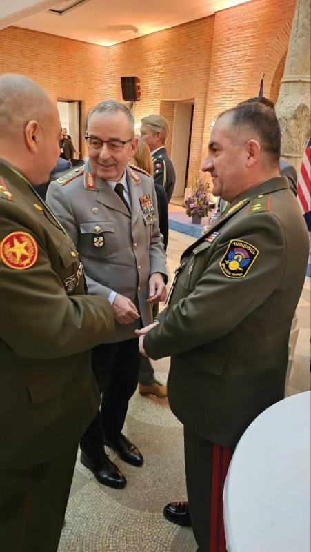 🇦🇲🇩🇪14 февраля первый заместитель министра обороны РА, начальник Генерального штаба ВС РА, генерал-лейтенант Эдвард Асрян также принял участие в приеме высокопоставленных военных руководителей. В ходе приема Эдвард Асрян провел беседы с начальником штаба обороны федеральных вооруженных сил Германии генералом Карстеном Брауэром, командующим Объединенными вооруженными силами НАТО в Европе-командующим Европейским командованием США генералом Кристофером Каволи, начальником колледжа НАТО генерал-лейтенантом Артуром Нильсеном (Вооруженные силы Дании) и другими высокопоставленными военными. Armenian Military Portal