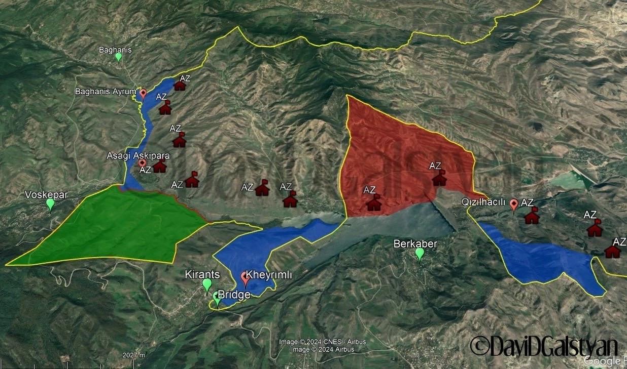 Обмен территориями в районе Баганис-Беркабер в Тавуше Судя по пересказам слов Никола Пашиняна на встрече с жителями тавушских сел, обсуждается примерно такой сценарий. Это не официальная карта, а предположение/анализ (!) на основе полученных данных. Итак, армянские ВС отходят с подконтрольных им территорий, указанных синим южнее Баганиса, Киранца и восточнее Беркабера. Под армянским контролем и предметом непосредственного обмена станет участок близ села Воскепар (зеленым). Взамен под азербайджанским контролем останутся земли села Беркабер (красным). Добавлю, что зеленый участок – это прилегающий к селу Воскепар район, где проходит дорога Ереван-Тбилиси (площадь около 4,5 кв. км). Площадь красного участка – около 6,5 кв. км. Также под армянским контролем в этом сценарии должен остаться мост у села Киранц (также на дороге Ереван-Тбилиси). @Arm_Aeternum7
