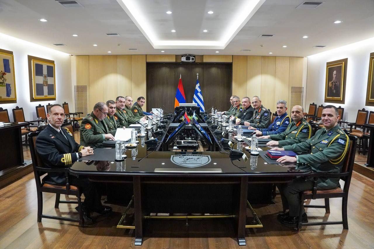 🇦🇲🇬🇷Делегация во главе с первым заместителем министра обороны Республики Армения, начальником Генерального штаба Вооруженных сил, генерал-лейтенантом Эдвардом Асряном находится с официальным визитом в Греческой Республике по приглашению начальника Генерального штаба национальной обороны Греции генерала Димитроса Хуписа. 27 февраля состоялась официальная церемония встречи генерал-лейтенанта Эдварда Асряна с участием почетного караула и оркестра. Прозвучали государственные гимны двух стран. За закрытым заседанием начальников генеральных штабов последовало расширенное заседание. Обсуждался ряд вопросов, касающихся сотрудничества Армении и Греции в оборонной сфере. Высоко оценивая ход сотрудничества, были упомянуты ранее выполненные работы и намечены будущие задачи. Стороны также обсудили вопросы, связанные с трехсторонним сотрудничеством Армения-Греция-Кипр в оборонной сфере. Собеседники обменялись мнениями по вопросам региональной безопасности. Armenian Military Portal