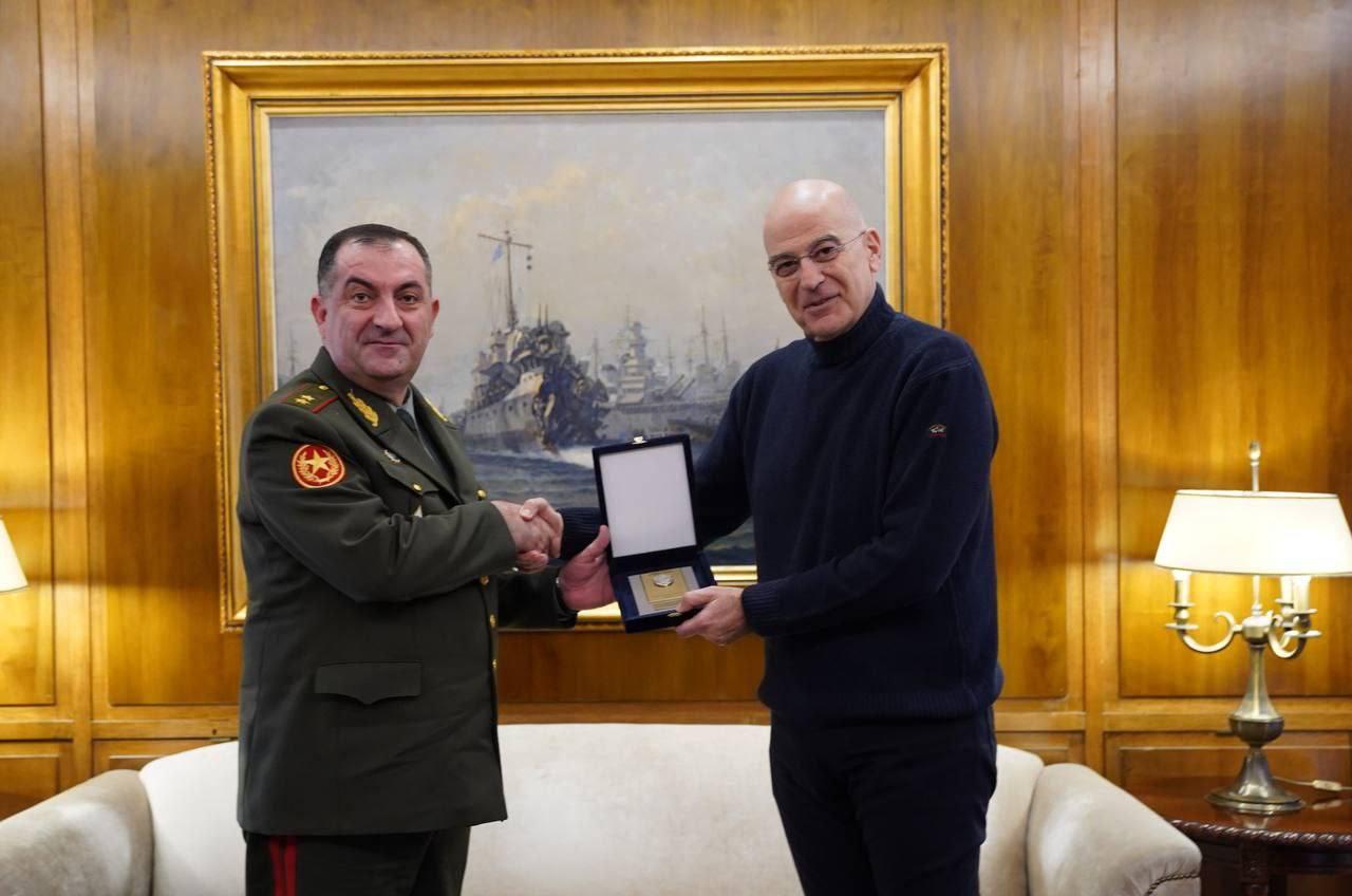 В рамках официального визита в Грецию первый заместитель министра обороны РА, начальник Генерального штаба ВС, генерал-лейтенант Эдвард Асрян встретился с министром национальной обороны Греции Николаосом Дендиасом. В ходе встречи были обсуждены вопросы сотрудничества Армения-Греция в сфере обороны. Начальник Генерального штаба ВС РА представил ход реформ, проводимых в Вооруженных силах Армении. Министр национальной обороны Греции вновь выразил готовность поддержать реализацию реформ в ВС РА. Были также обсуждены вопросы региональной безопасности. Armenian Military Portal