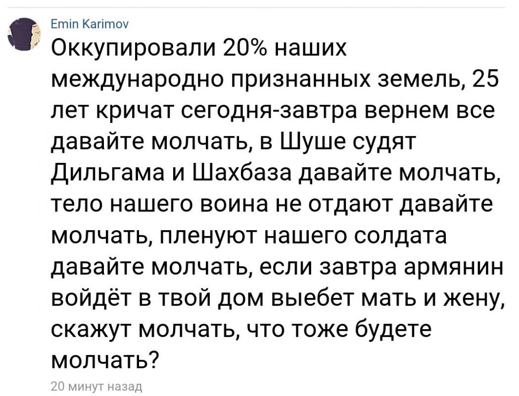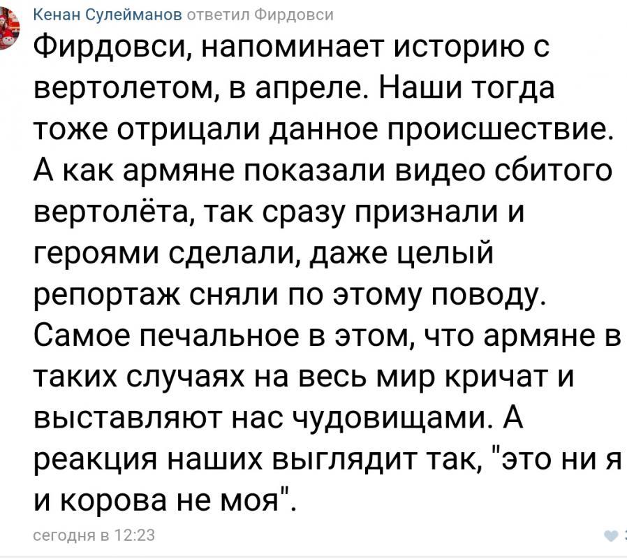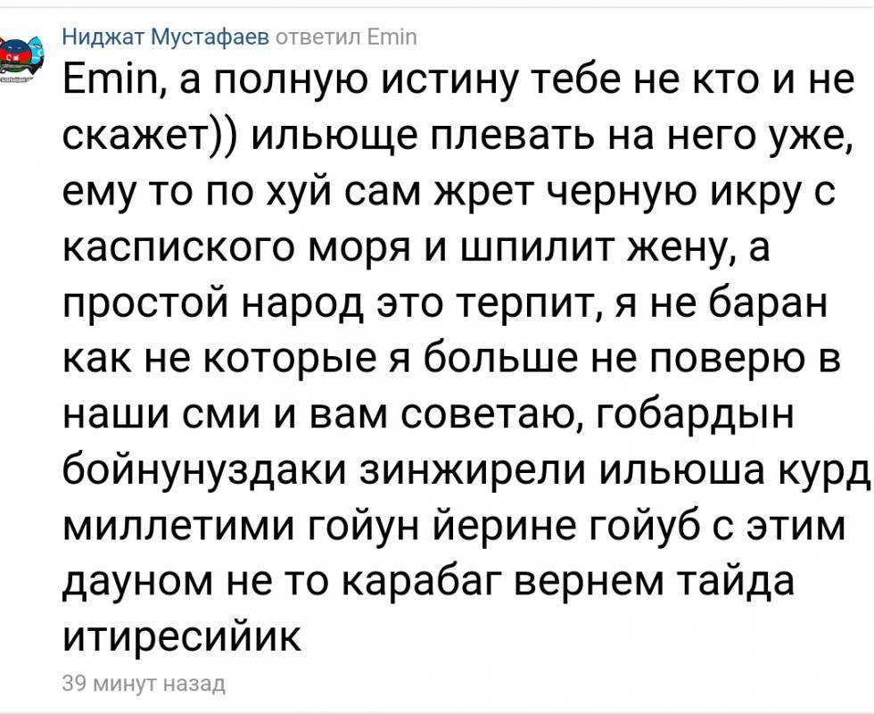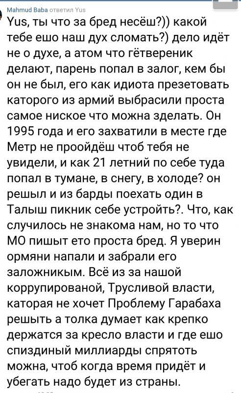 Сегодня свадьба моей любимой, я убью себя... В воскресенье, 29 января, стало известно о смерти военнослужащего Вооруженных сил Азербайджана Ханали Фаттаева. Местная пресса написала, что он стал шехидом, но в Минобороны сообщили, что солдат покончил с собой. Как передает Qafqazinfo , один из знакомых Ханали поделился воспоминаниями о нет. По его словам, он решил покончить с собой, после того как любимую им девушку выдали замуж за другого: «Он был влюблен в одну девушку. Он был из бедной семьи, поэтому девушку не стали выдавать за него. Он написал мне, что девушку не отдают за него, и что ему очень плохо. Написал, что хочет убить себя. Я стал ему звонить, писать на почту. Сказал, что сделав это, он согрешит перед Аллахом…Он проклял свою бедность и вышел из сети. Через месяц-второй он снова написал мне, сказал, что хочет обручиться с другой, но не может найти работу. Я посоветовал ему пойти в армию, сказав, что обязательно найду ему работу». Отметим, что из записей Ханали в социальных сетях можно понять, что он жил в тяжелых условиях и нуждался. https://vk.com/wall-35328577_685580