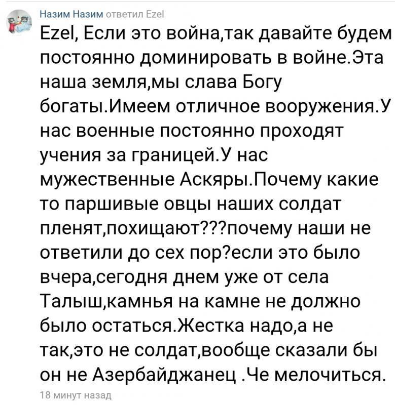 хватит лгать, датчик . http://newshay.com/news/14896.html Мать азербайджанского диверсанта поймала на лжи Минобороны Плененный накануне азербайджанский диверсант служил в качестве сверхсрочника. Об этом заявила мать военнослужащего Саида Гусейнова в интервью ANS. После завершения военной службы Эльнур четыре месяца назад снова отправился в армию в качестве сверхсрочника. В последний раз он был дома накануне вечером. Отметим, что в Минобороны Азербайджана отказались от своего солдата и завили, что «во время военной службы Эльнур Гусейнзаде систематически нарушал воинскую дисциплину, не выходил на службу, а впоследствии был демобилизован из рядов Вооруженных сил и в настоящее время не состоит в Вооруженных силах Азербайджана». Напомним, что военнослужащий ВС Азербайджана Эльнур Гусейнзаде был пленен во время попытки диверсионно-разведывательного проникновения на территорию Нагорно-Карабахской Республики.