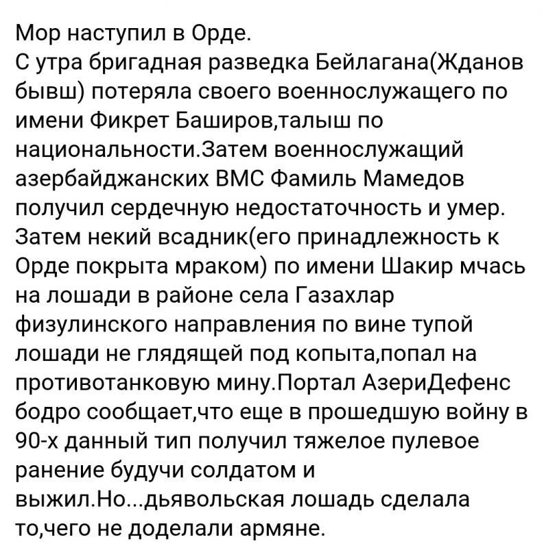 Начальник Генштаба ВС Армении: Противник оставил на нашей территории тело одного диверсанта Тело азербайджанского военного из диверсионной группы ещё остаётся на армянской стороне. Об этом заявил журналистам 8 января начальник Генштаба Вооружённых сил Армении Мовсес Акопян. «Из того, что подлежит огласке, могу заявить, что противник, выполнявший задание, был поражён. Тело находится у нас. Группа поддержки действовала достаточно умело и не дала противнику возможности достичь цели», - отметил Акопян, комментируя азербайджанскую диверсию 29 декабря.