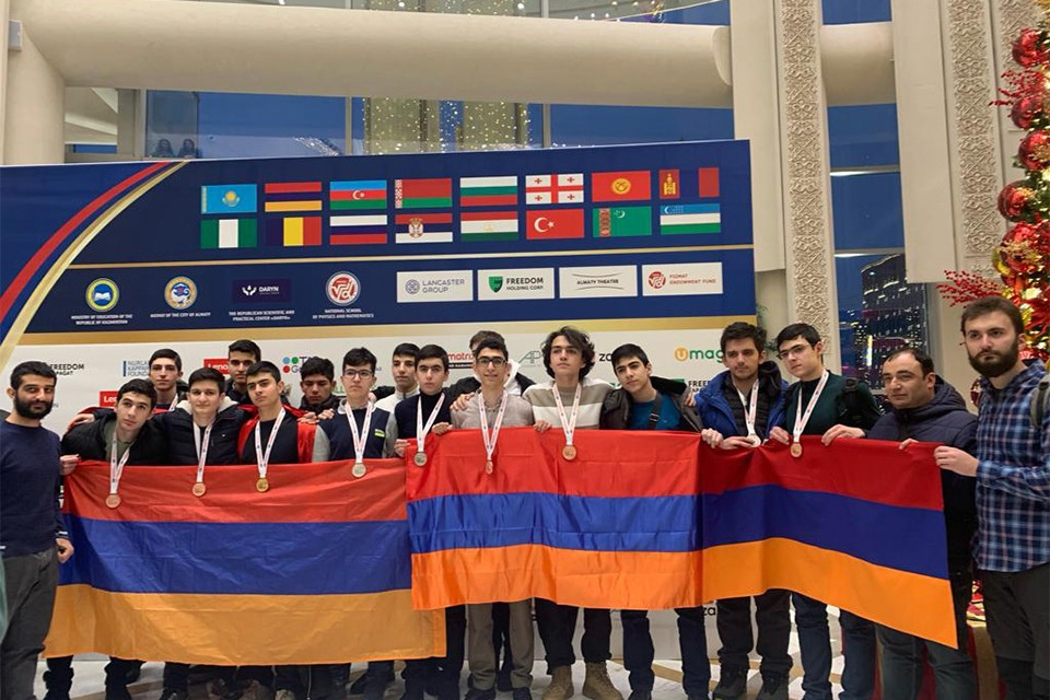 Учащиеся армянских школ завоевали 17 медалей на международной олимпиаде по математике, физике и информатике в Алматы. Об этом сообщает министерство образования, науки, культуры и спорта. Учащиеся трех ведущих физико-математических школ страны (Физмат, Квант, Фотон) завоевали 2 золотые, 5 серебряных и 10 бронзовых медалей. Искал инфу сколько медалей соседи взяли не нашел(( t.me/economyofarmenia
