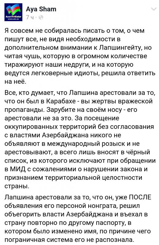 Лично у меня нет никаких претензий к Азербайджану , мои претензии только к Лукашенко .Он продажный диктатор , к тому же трепач .Потому что никакой интерпол не объявлял в розыск Лапшина. А Алиев добивается своего любыми возможными способами .Так и должно быть. Я в первые дни писал , за посещение Арцаха его простят моментально , а вот  насчет остального не зачем винить азиков .