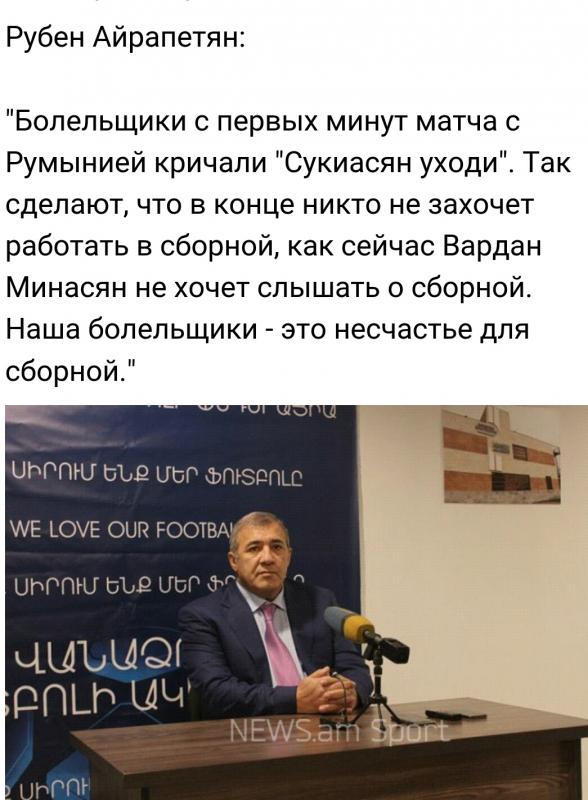 У Сержа армяне с их горш мэтнолорд несчастье для страны,у этого болельщики,у Сукиасяна журналисты.Пипец.Хаи,скиньтесь на киллера,не жмотьтесь.Кстати,хаерэ иранц чузогутюнов(во главе со мной),Моуриньоин кэл...ен кашум.