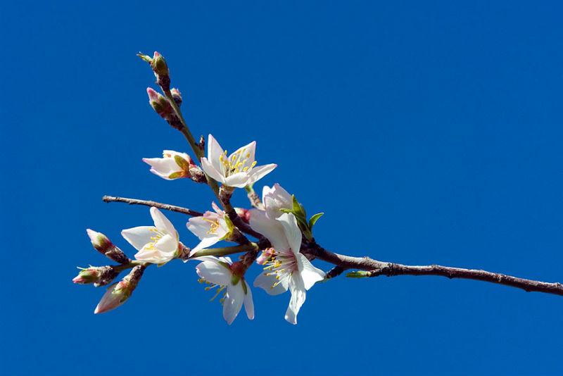 Цветущий миндаль. И отдельно цветок.  Многие считают миндаль орехом. Но, на самом деле, он является косточковым плодом рода Слива.