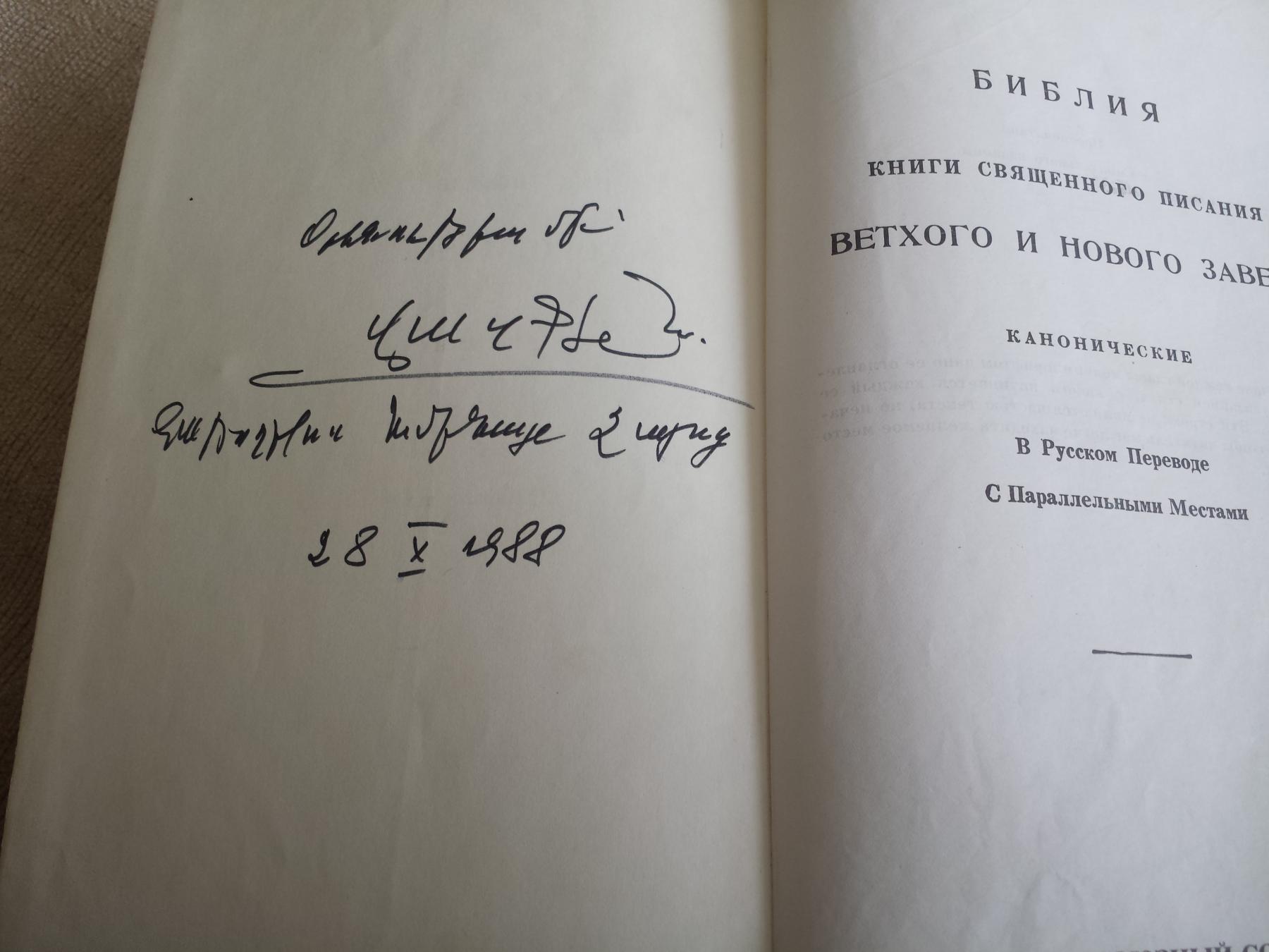 Эт дарственная надпись и автограф, Каталикоса Вазгена Первого 1988 году