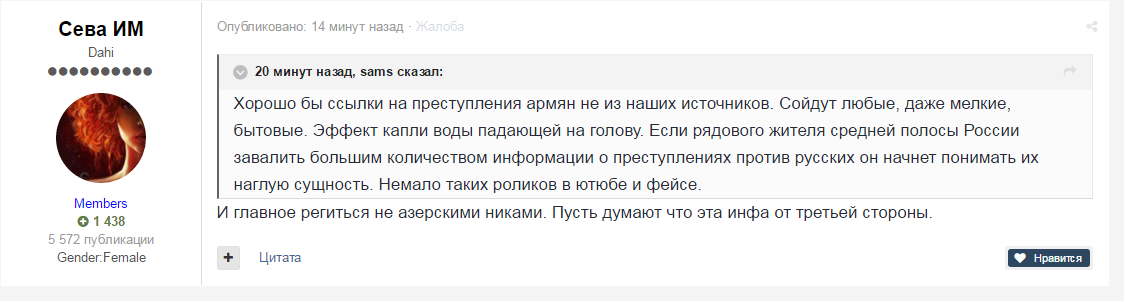 азеры призывают на диспуте региться русскими именами на рос.ресурсах и поливать армян грязью от имени русских.