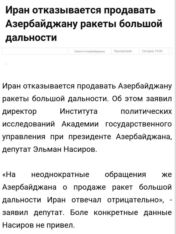 Ах какой глюпий Иран. Бизнес вести не умеет... Ведь если он не продаст, то другие продадут. И потом, если Армения для него стратегический союзник, то Азербайджан - стратегический партнер!
