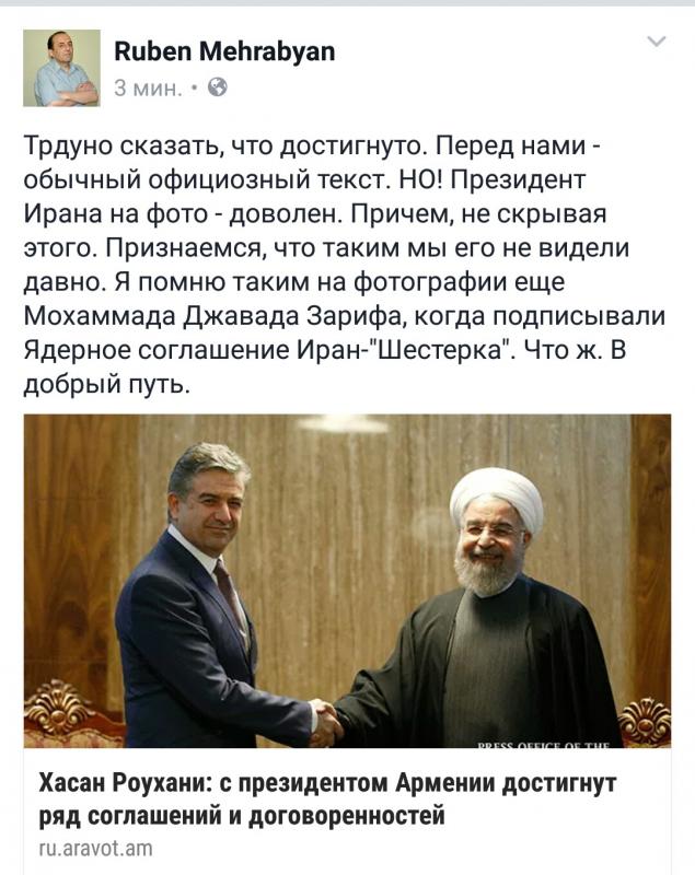 «После отмены летом этого года визового режима данное соглашение, по сути, сделало армяно-иранскую границу прозрачной, легкопроходимой, такой же, как армяно-грузинская», — отмечает иранист.