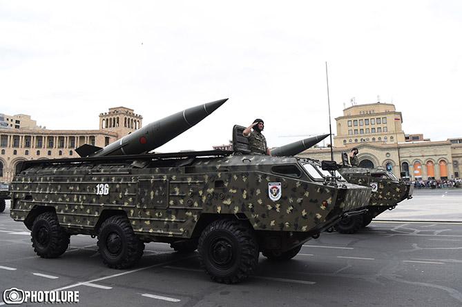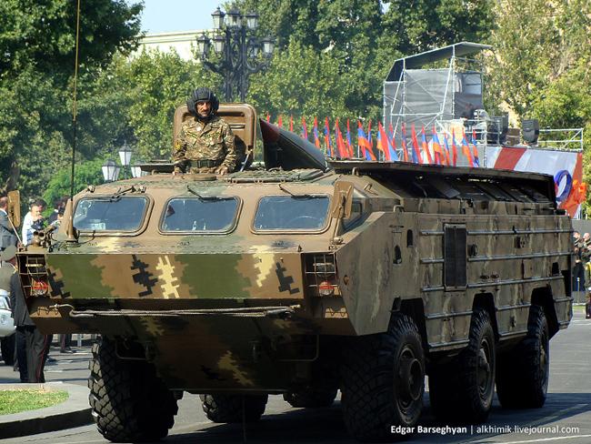 Точку завезли в Армению буквально за пару дней до парада (грузины попой крутили до последнего). Они по площади шли с невысохшей ещё краской.   Там кожух какой-то помоему сняли перед парадом.. Теплозащитный или ещё какой, не помню точно.. Из этого азерки сделали вывод что ракеты ненастоящие..