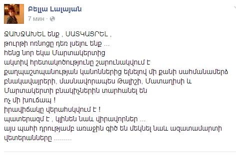 Как передает Panarmenian.net, нескольких военнослужащих, получивших ранения в ходе боевых действий на арцахо-азербайджанской границе на вертолете перевезли в Армению. Скорая помощь медицинского центра «Эребуни» в Ереване перевозит раненых в военный госпиталь «Мурацан». Об этом сообщила пресс-секретарь МЦ «Эребуни» Шушан Унанян.