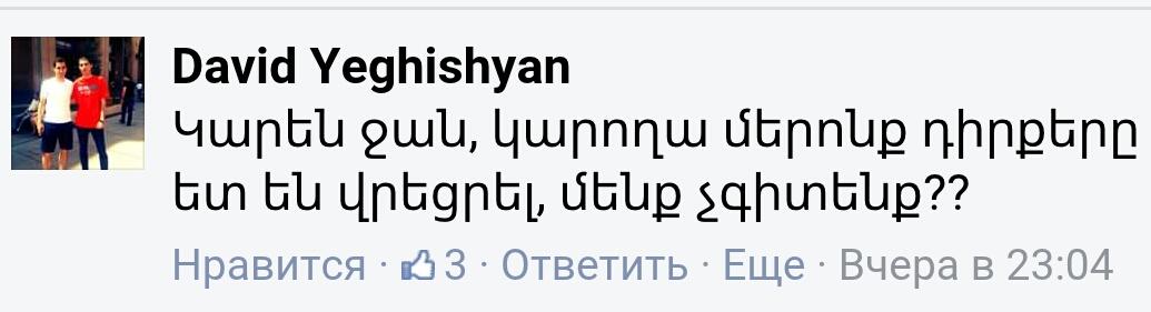 «Հիմնադիր խորհրդարանի» խոսնակ Սյուզան Սիմոնյանը ֆեսյբուքյան իր էջում գրառում է կատարել՝ նշելով, թե դիրքերում լարված է.