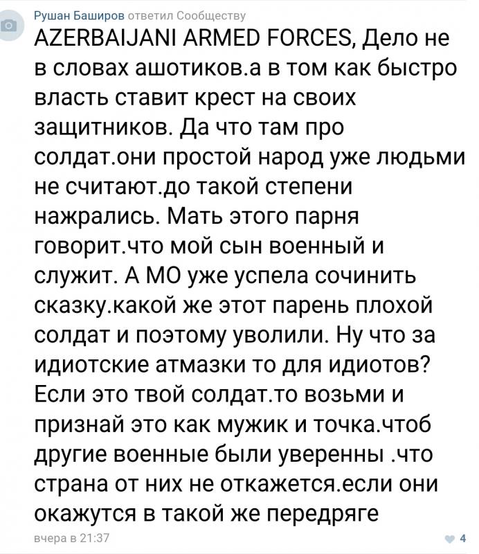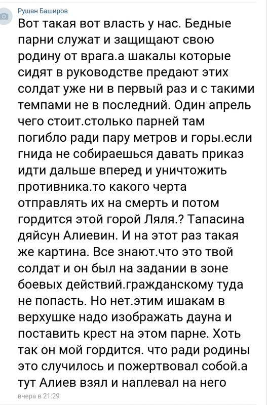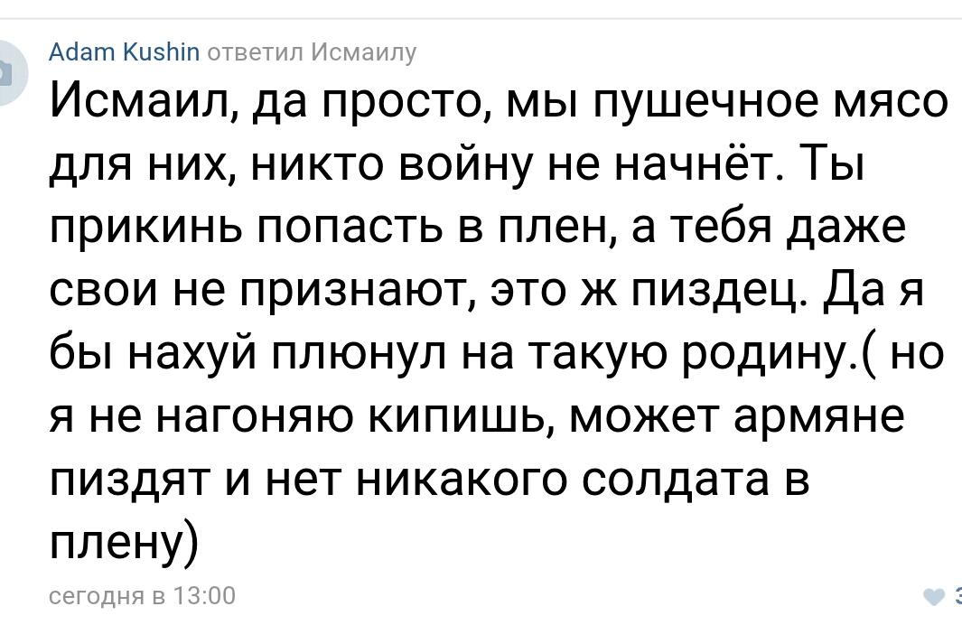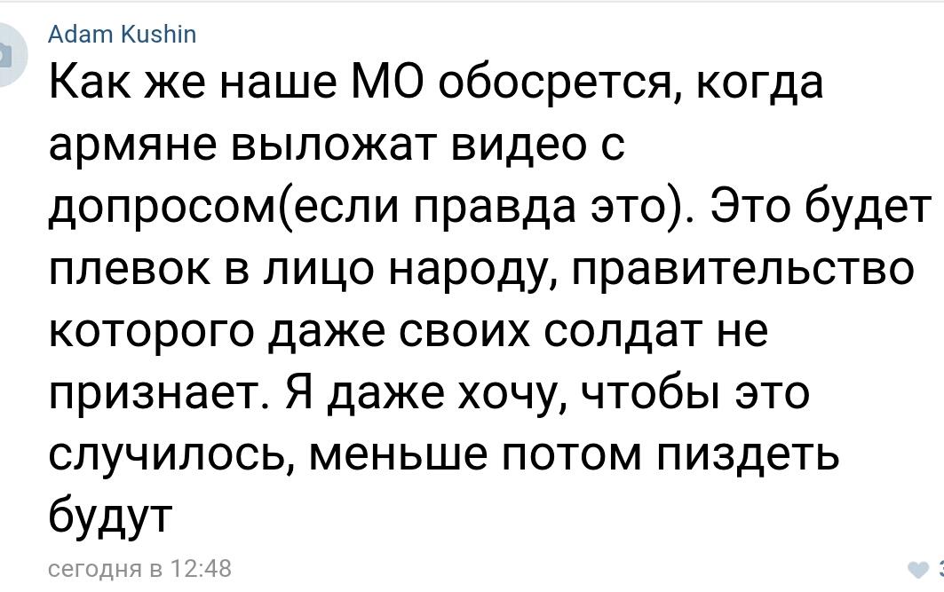 Однако далее бедолаг азерпропа ожидал "нож в спину": азербайджанский сайт istipress .com разместил видеоинтервью с матерью Гусейнзаде, которая заявила, что ее сын четыре месяца назад вновь пошел на военную службу в качестве сверхсрочника, а в последний раз выходил на связь накануне вечером.