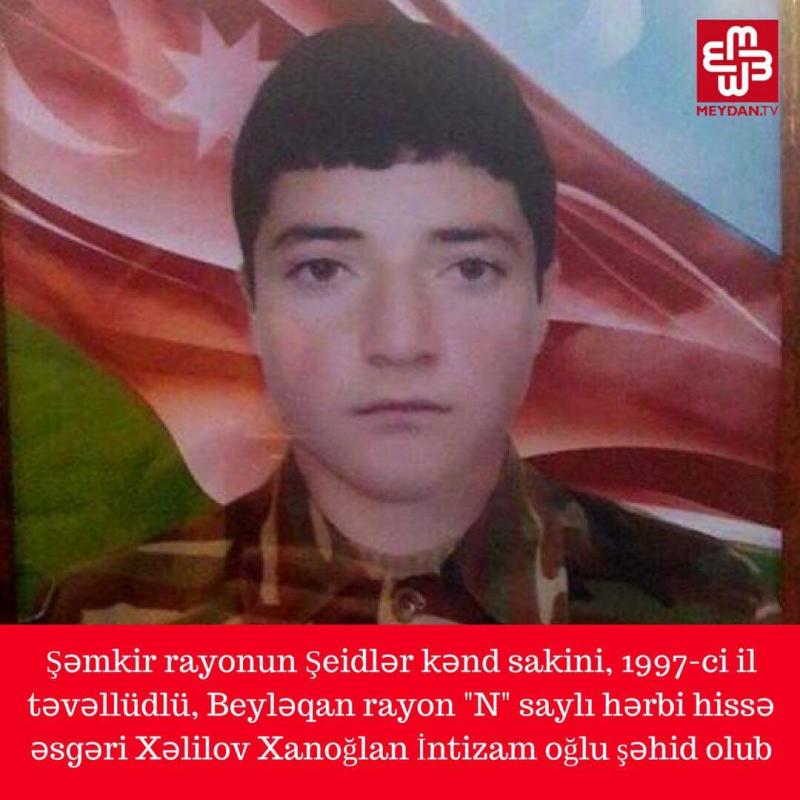 Сегодня, 22 февраля, ликвидирован рядовой ВС Азербайджана Ханоглан Интизам оглу Халилов. 1997 гр Как сообщает пресс-служба министерства обороны Азербайджана аскер был уничтожен в результате артобстрела с армянской стороны.