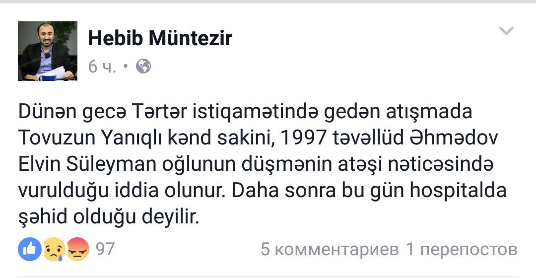 Еще один ,скончался в госпиталн от ранений .Ахмедов эльвин Сулейман оглу,1997гр .тертерский р-н,село Яникли