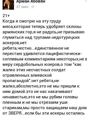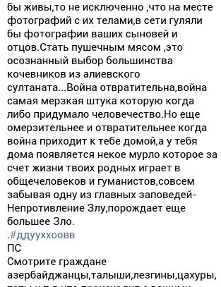 А если серьезно Сиго я лично на 90% уверен, что апрельские события были согласованы Азербайджаном с Россией, была договоренность на 5-7 дневную войну, в ходе которой азеры собирались осуществить блицкриг, пусть эти дурни пишут что хотят, но это факт, за 3 поста не кладут столько людей из войск спец. назанчения, но как только азеры поняли что дело застопорилось, дали обратный ход, вспомни сам.. Алиев буквально на второй день объявил, что готов к прекращению огня. то есь Алиев готов был забыть это все как кошмарный сон, и не хотел бы чтобы было в приницпе столько шума.