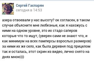 Сергей Гаспарян , если ты находишься где то на одном уровне с позициями азеров , это вовсе не означает , что они у нас не отвоевали одну высоту )).