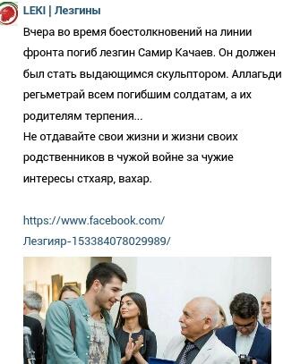 Апрель начался с возобновления активных боевых действий в Нагорном Карабахе. Азербайджанская армия начала наступление на армянские позиции. С обеих сторон есть раненые, погибшие. Есть среди них и лезгины. Наши земляки получают ранения, лишаются жизни, становятся жертвами этой войны. С печалью отмечаем, что лезгины умирают не за интересы своего народа. Нет никаких сомнений в том, что это не наша война. Наши ребята являются лишь пушечным мясом, идущим на расход во имя интересов государства, ставшего для лезгин символом ассимиляции, потери своей культуры, истории и своих исконных земель. Мы оплакиваем эти напрасные жертвы. Судить их мы не можем - они родились, выросли и живут в среде, наполненной пропагандой, твердящей, что государство, лишающее их народ будущего, земли и генофонда (путем ассимиляции лезгин в азербайджанцев) является их родным государством. Выросло целое поколение лезгин, сознание которых отравлено этой ложью. И сегодня представители этого поколения, молодые ребята отдают свои жизни не за то.