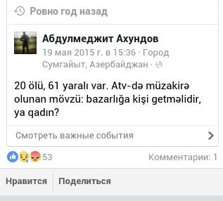 ровно год назад в этот день ,тогде еще живой, дохлый бозкурд написал такой статус: 20 убито,61 ранено а на азтв обсуждают кому ходить на рынок мужчине или женщине.