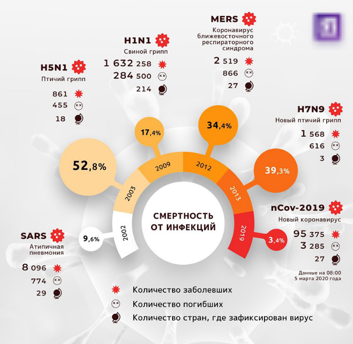 Когда слушаешь инфекционистов,то по их словам от гриппа умирает за год больше миллиона,плюс разные формы вируса гриппа тоже постоянно мутируют и  как правило прежние прививки обнуляются)).Плюс от обычного гриппа как правило такого масштаба проверок не делают.Если бы всех тестировали как сейчас,то получилось бы огроменная цифра носителей обычного гриппа.А всех тех кто попал с хроническими болезнями и гриппом в больницу и умерших скажем от сердечной недостаточности или диабета,но в свидетельстве о смерти было бы написано от гриппа,то тоже была огроменная цифра