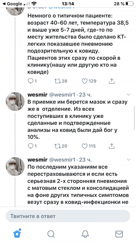 Вы только представьте, только 10% подтверждённая корона. У человека может бактериальная пневмония, к нему ещё корону привлюсуют, шансов побороть этот букет, особенно людям из зоны риска вдвое меньше :fool:
