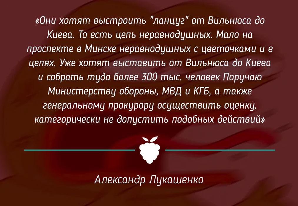 В общем, Лука решил не допустить живую цепь людей от Киева до Вильнюса в знак поддержки и решил отправить на границу военных.