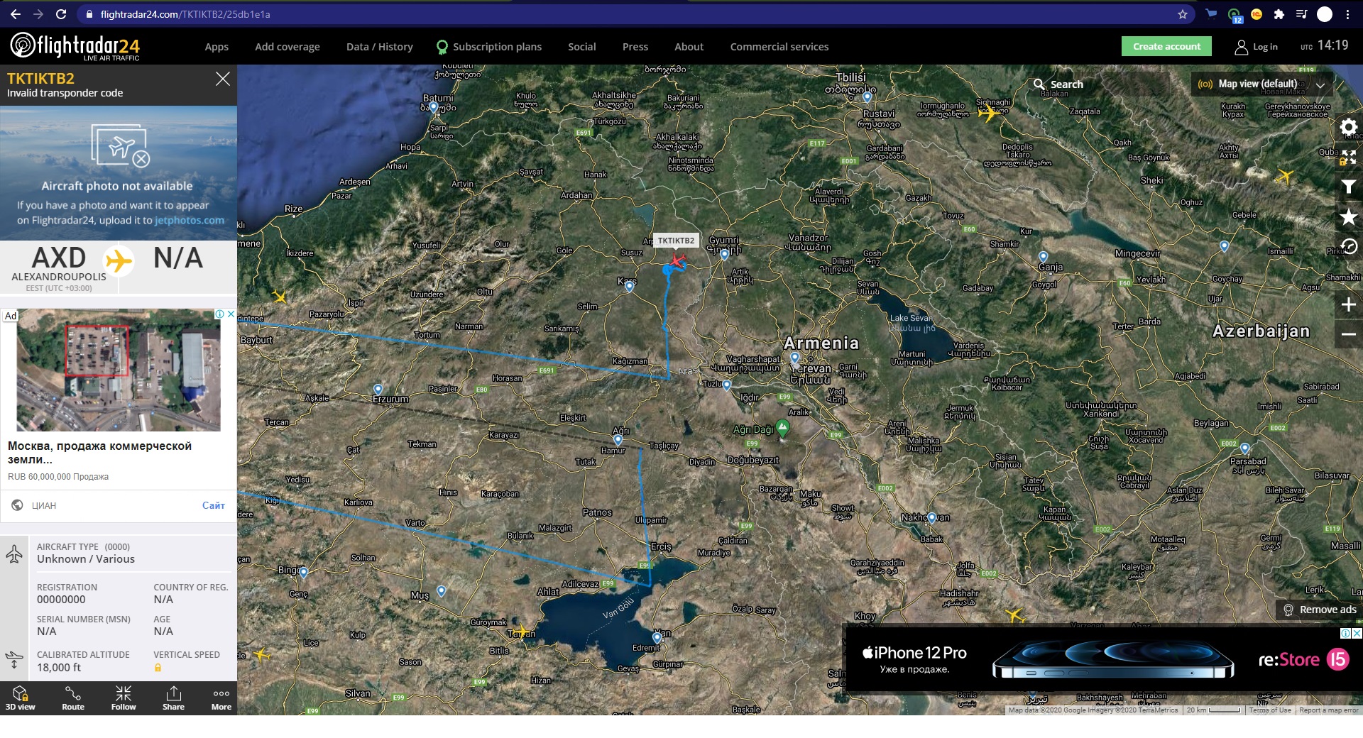 Ил-76 - тяжелый военно-транспортный самолёт Минобороны Азербайджана. Мы зафиксировали, что самолёт пропал с радаров при заходе в воздушное пространство Турции.