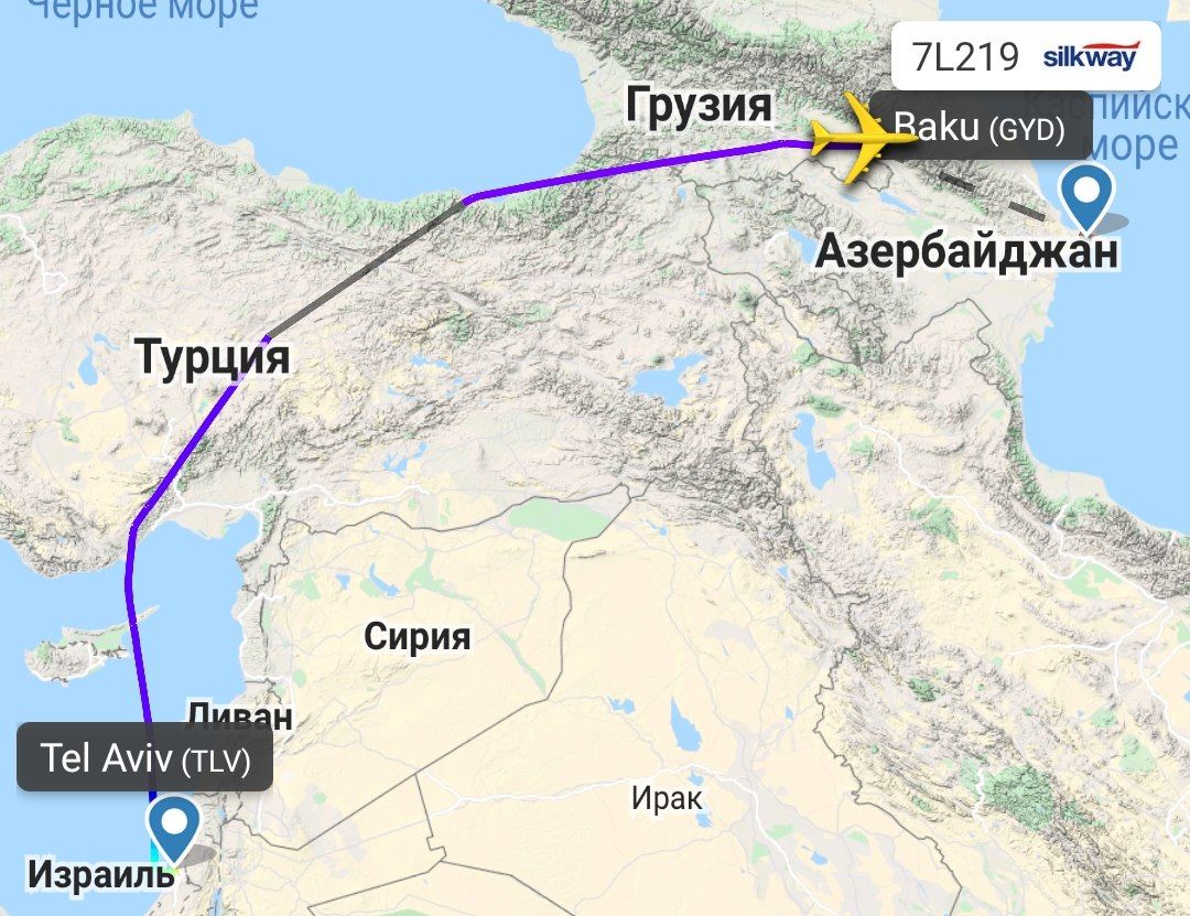 Из Тель-Авива (Израиль) в Баку (Азербайджан) летит грузовой Boeing 747 азербайджанской авиакомпании Silk Way Airlines, задействованный в поставках оружия для воюющей страны.