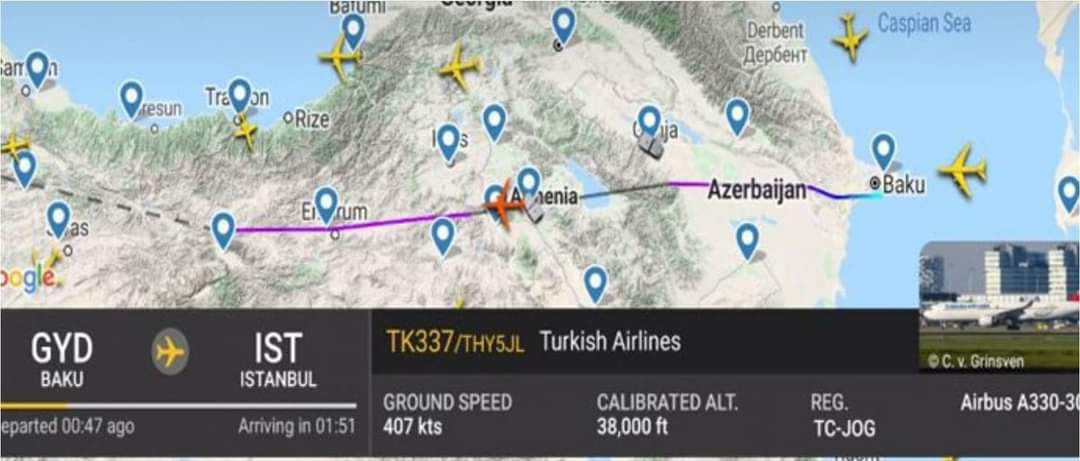 ‼️ Рейсы Баку-Стамбул беспрепятственно осуществляются через  «закрытую» воздушную границу Армении
