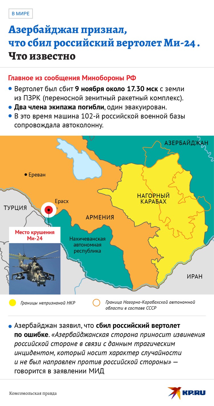 Про вертолет мне рассказать??? Так соглашение о примирении было подписано в тот же день когда и вертолет сбили...или вы не в курсе??? Или нужно было после вертолета отбивать у азеров все пять районов с Шушей и опять передавать их Пашиняну, чтобы он снова их просрал???