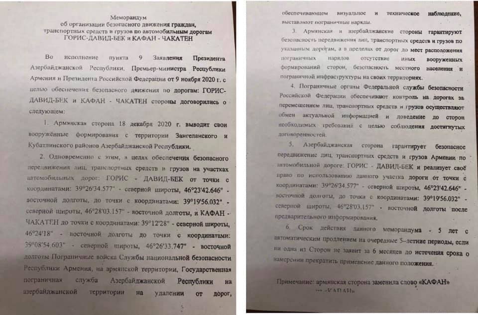 Политолог Грант Микаелян опубликовал сканы документа, подписанного Арменией и Азербайджаном.