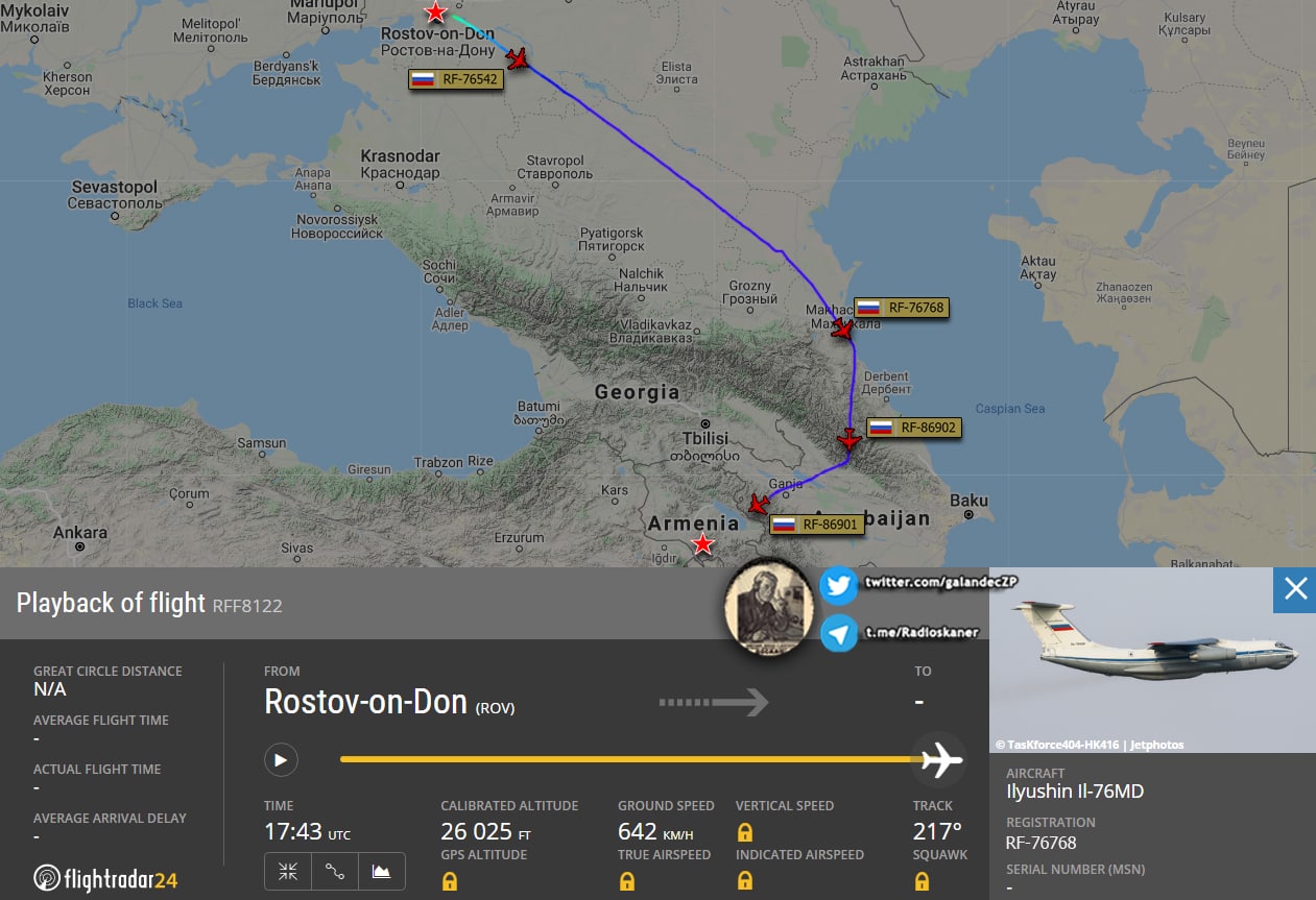 Очередная группа транспортников ВКС России  с  техникой  и  л/с  прибыла из Ростова в  Армению