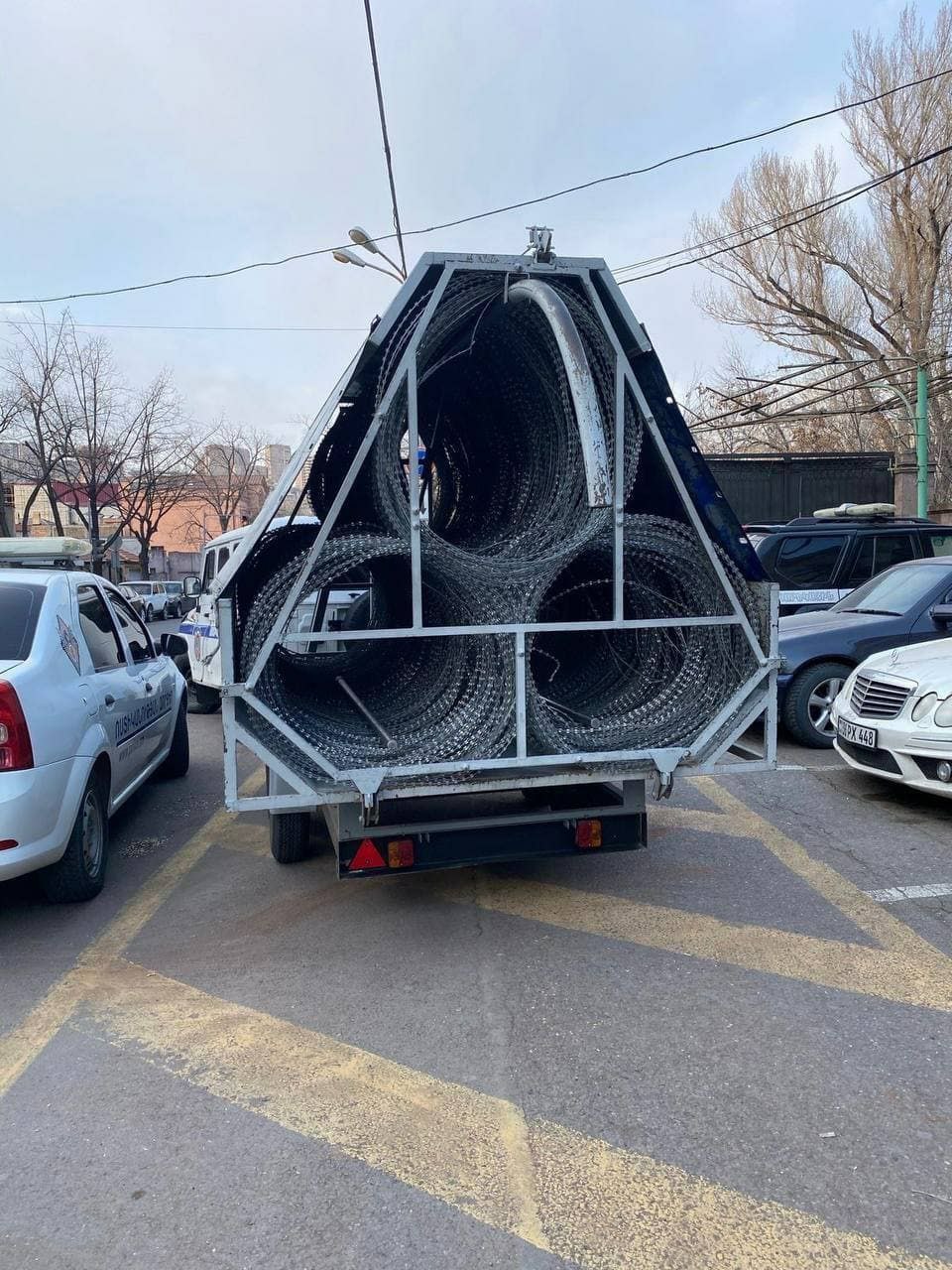 К зданию Национального Собрания в Ереване привезли колючую проволку.