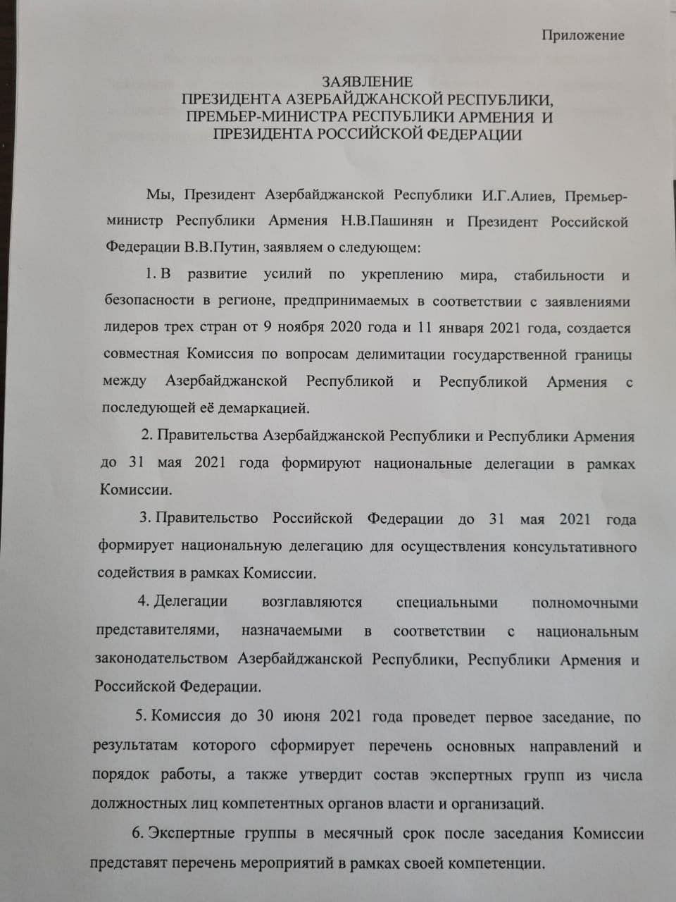 🔥Опубликован полный текст проекта заявления, которое Пашинян, Алиев и Путин собираются подписать в скором времени.