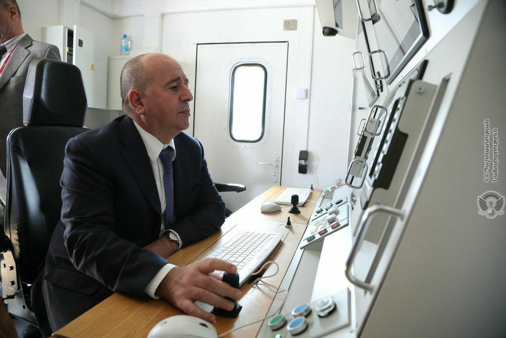 Министр обороны Армении Аршак Карапетян в пункте управления разведывательно-ударного БПЛА