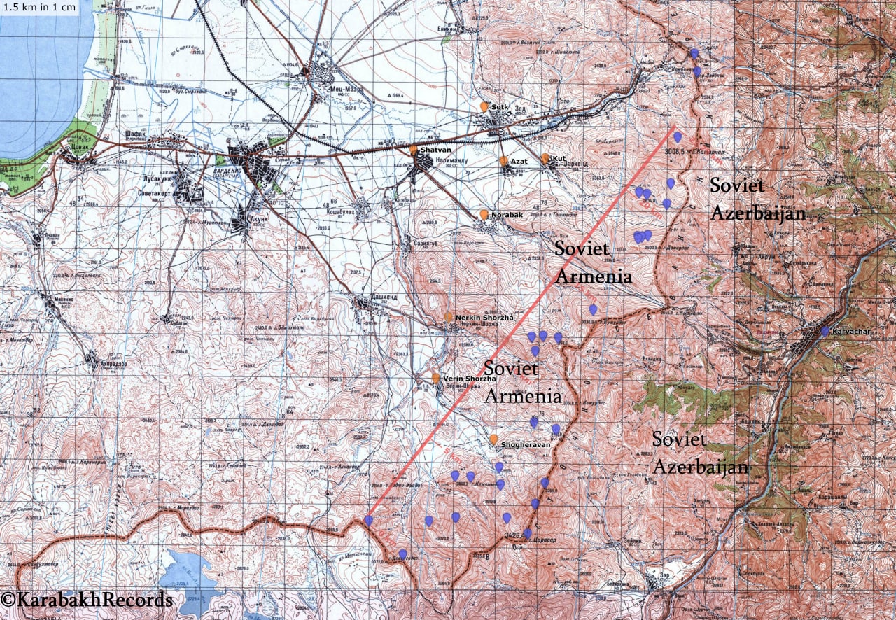 Геолокация позиций Азербайджана, сделанная по нашим наблюдениям, была перенесена на карту Генерального штаба Вооруженных Сил СССР 1973 года. В начале советизации Армении и Азербайджана, вплоть до 1930-х годов, границы Армении на всех участках были значительно шире. Но даже после передачи территорий Азербайджану эти районы всегда оставались частью Армении.