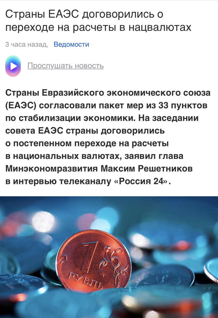 А могли бы перейти на торговлю в $ только, тогда хотя бы получали валюту из стран ЕАЭС. Как в Берёзках в СССР.