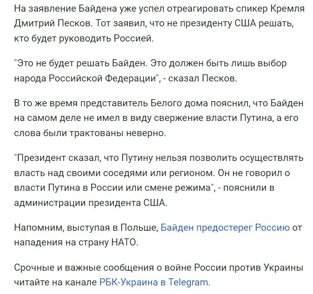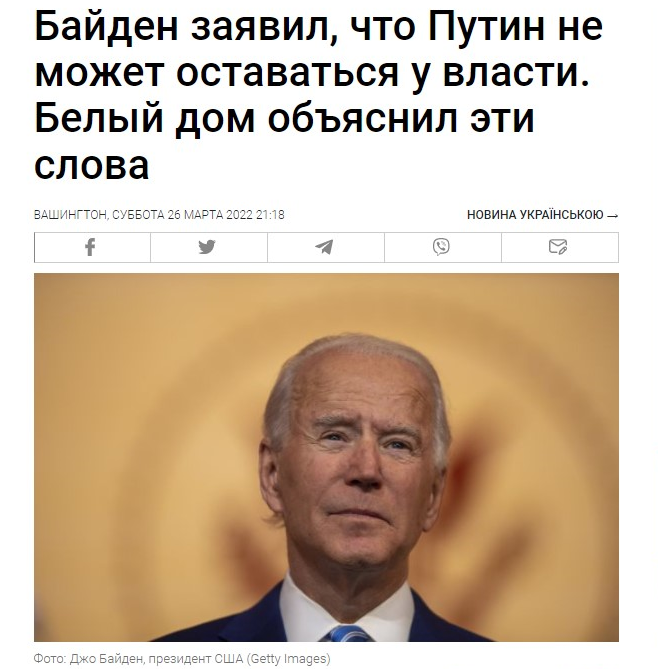 6. Путин должен уйти (позднее Белый Дом опроверг Байдена, заявив, что США не призывают к смене режима)