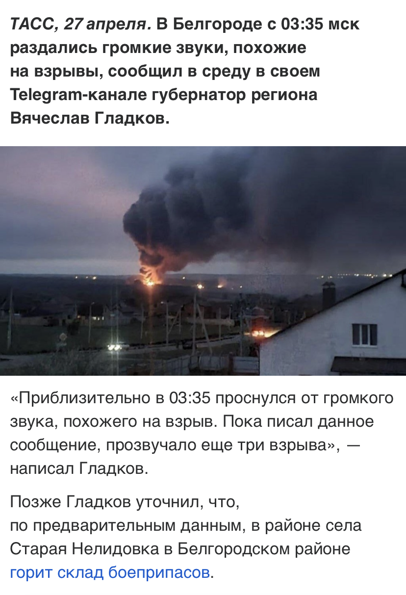 В Белгородской области горит склад боеприпасов