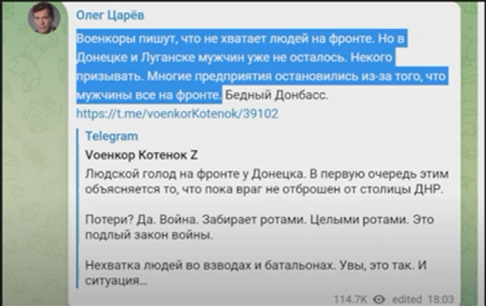 Что то давно "нашенского"  рыжего военкора не видно,Пегова. А Жучковский и Сладков дружно хают армию.