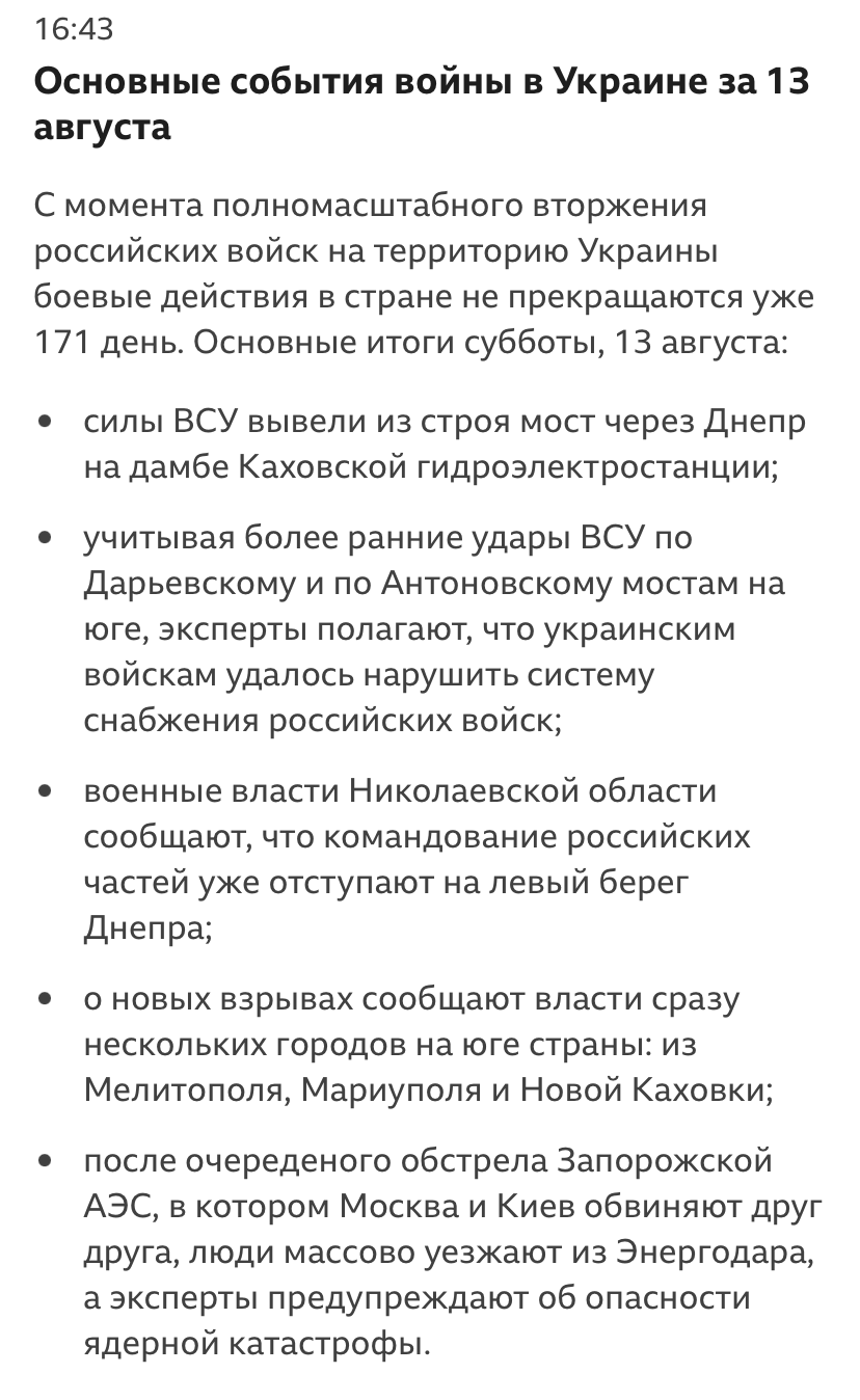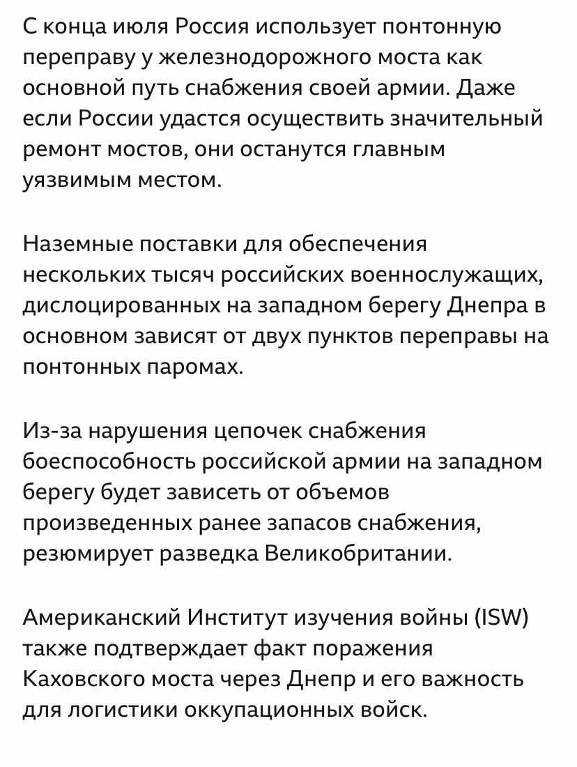 Назревает гуманитарная катастрофа в Херсоне, где в значительной степени прекращено снабжение армии вторжения. Следует открыть гуманитарные коридоры для её организованной сдачи в плен. А то её солдаты покупают индивидуальные плавсредства.